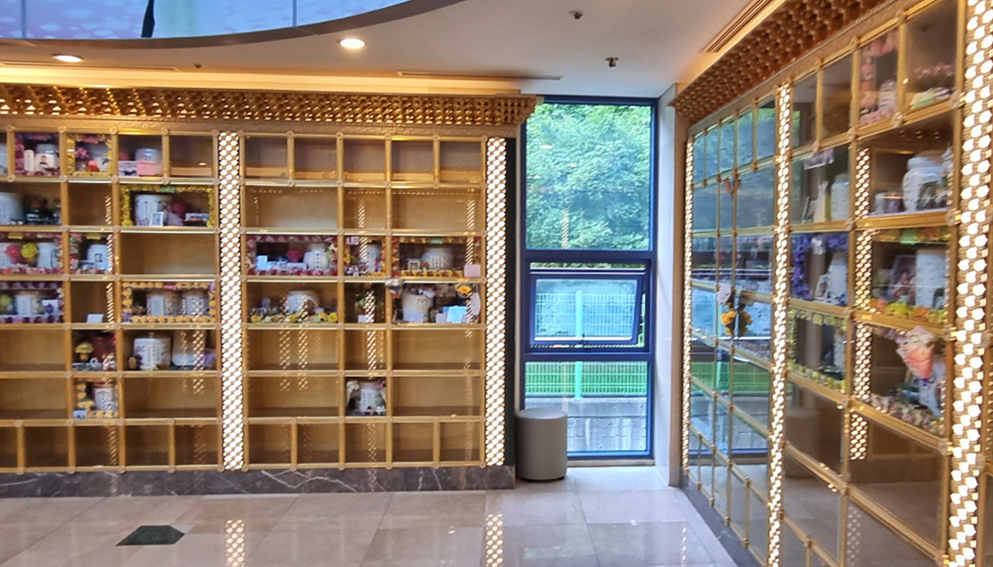 고급 안치실은 일반 안치실과 비교하여 한 공간의 안치실내에 모실 수 있는 위수가 더 적습니다. 아울러, 유골함 주변에 고인의 유품이나 가족사진 등을 넣어 두실 수 있는 여유 공간이 훨씬 더 크게 조성되어 있습니다.